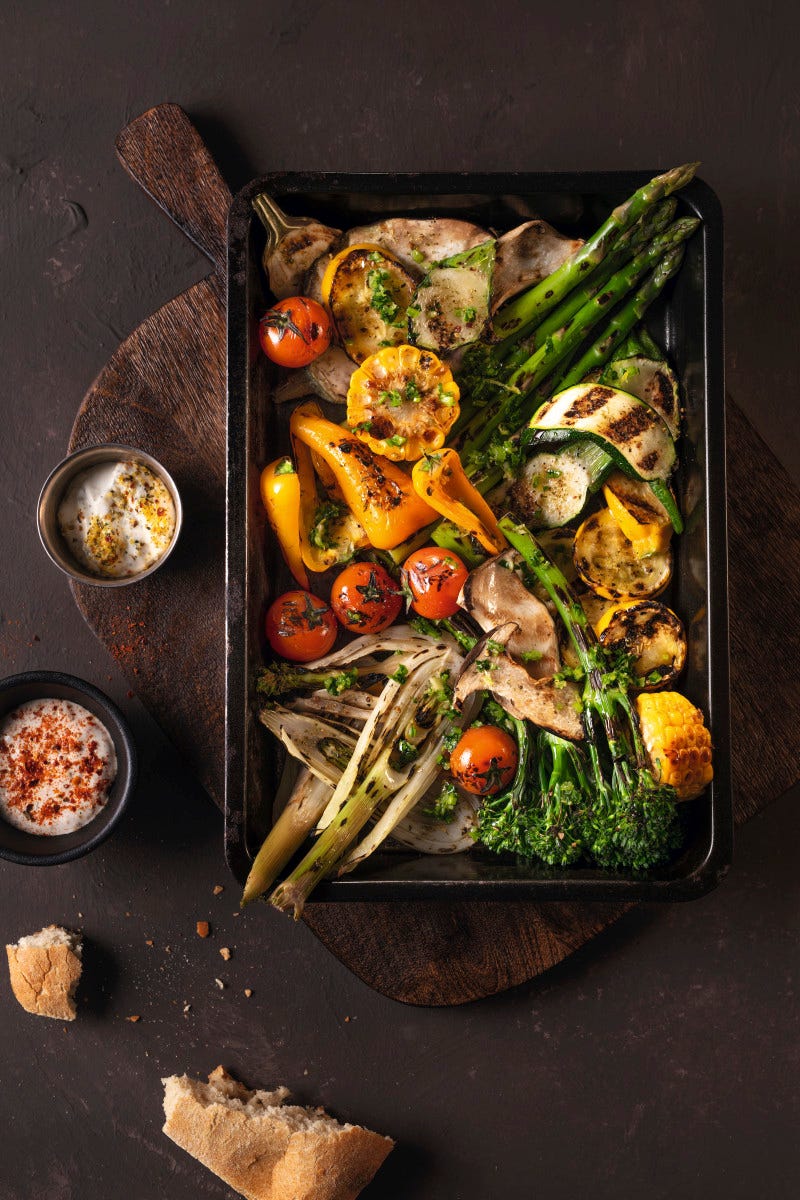 Sommerliches Grillgemüse mit Gremolata und Dips